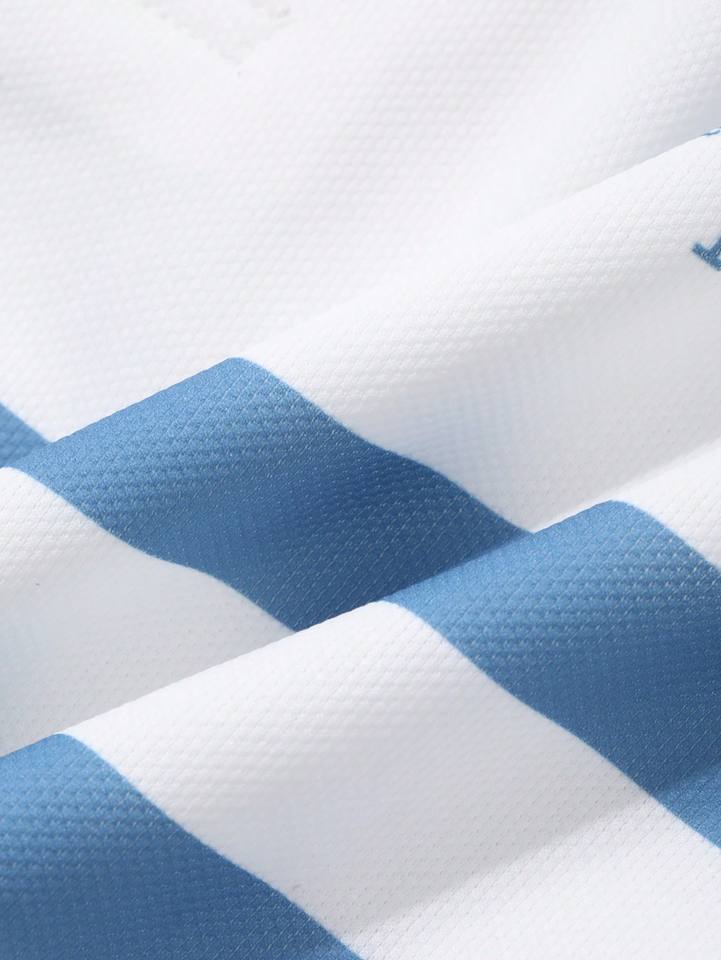 เสื้อโปโลลายทางพิมพ์ลายตัวอักษรแบบนามธรรมสำหรับผู้ชายในฤดูร้อน