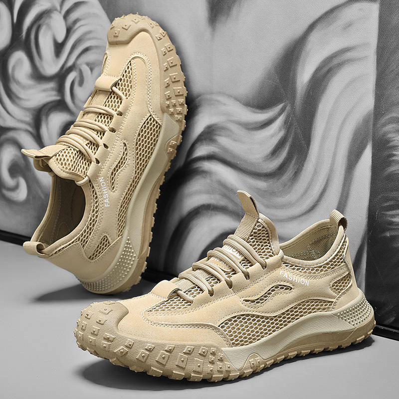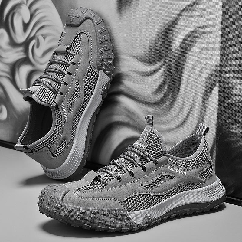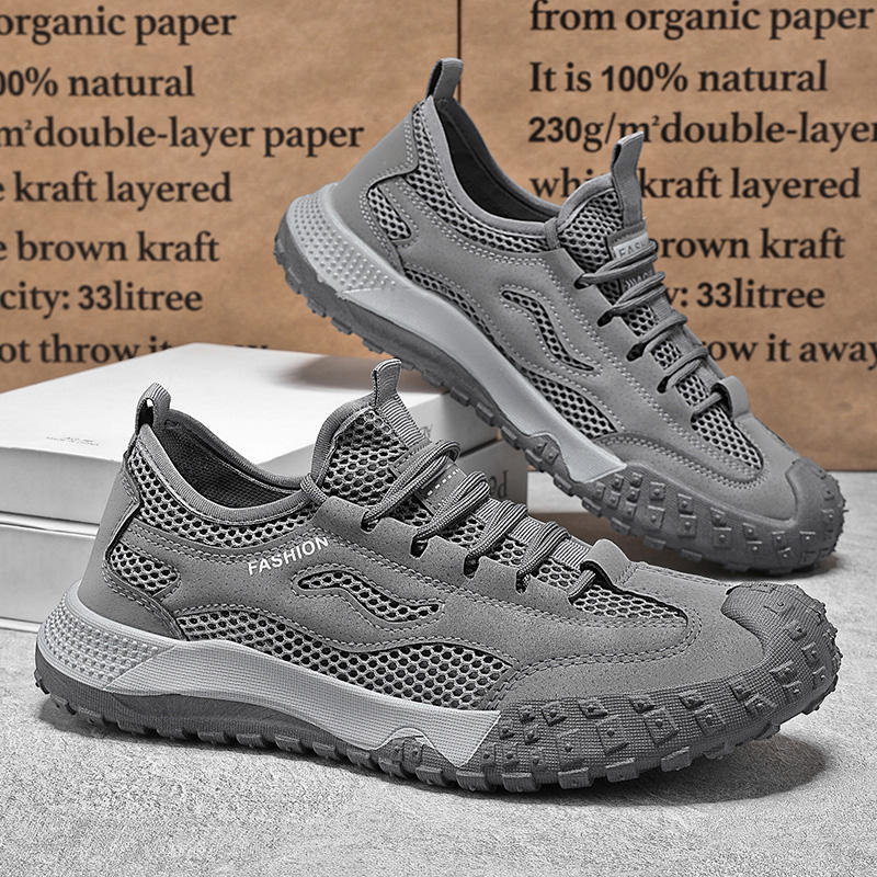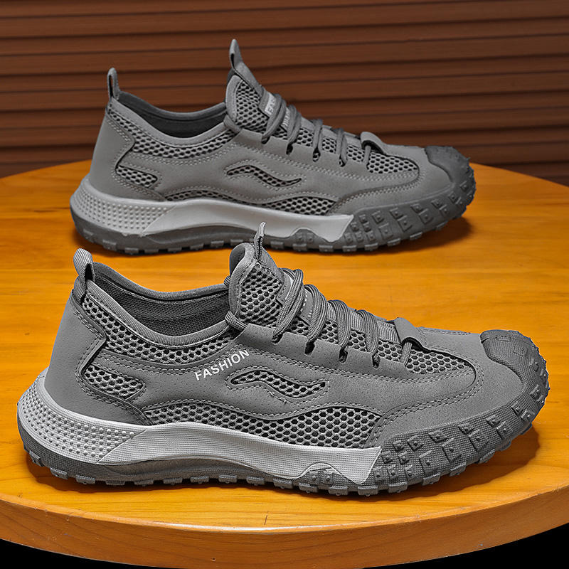 รองเท้าโลฟเฟอร์ตาข่ายระบายอากาศสำหรับผู้ชายในฤดูร้อน แบบผูกเชือก สวมใส่สบาย กันลื่น ทนทานต่อการสึกหรอ รองเท้าลำลอง รองเท้าเพื่อความปลอดภัยในการทำงาน Evergreen