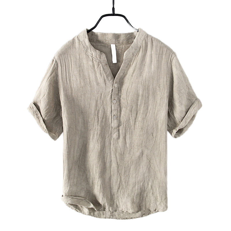เสื้อสวมหัวแบบลำลองของผู้ชายสำหรับฤดูใบไม้ร่วงเสื้อผ้าฝ้ายแบบเรียบง่ายมีกระดุมแถวเดียวระบายอากาศได้ป้องกันการยับย่นแขนสั้นสำหรับวัยรุ่น