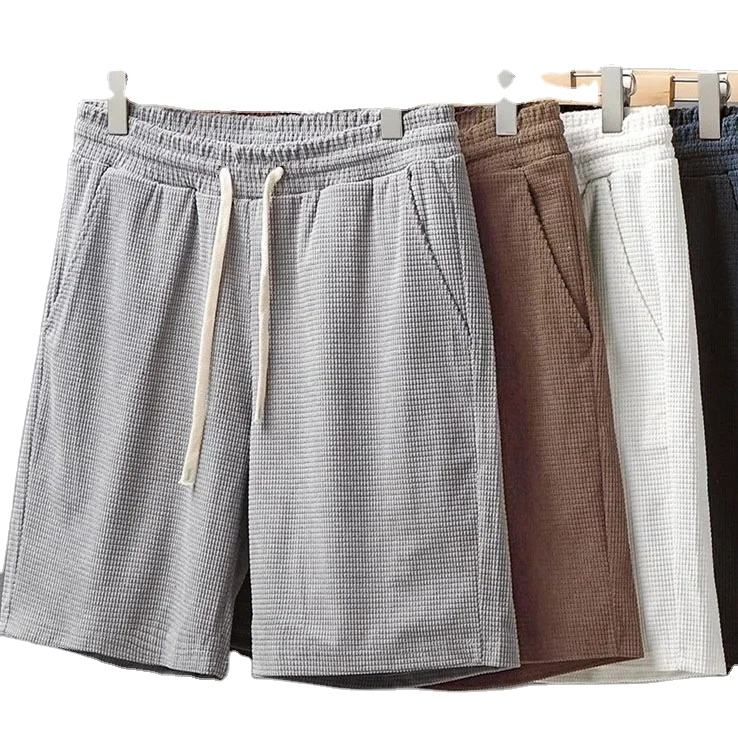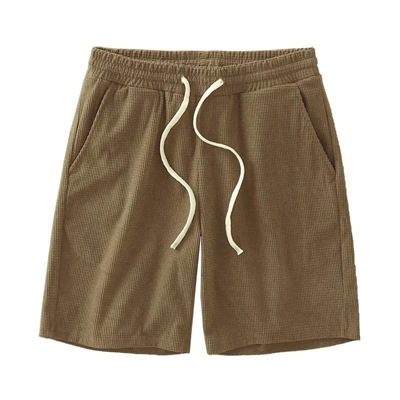 กางเกงขาสั้นกีฬาผู้ชายสำหรับฤดูร้อน แบบสบายๆ มีเชือกผูก เอวสม็อค ระบายอากาศ แห้งเร็ว เหมาะสำหรับฟิตเนส ยิม วิ่ง เดินป่า