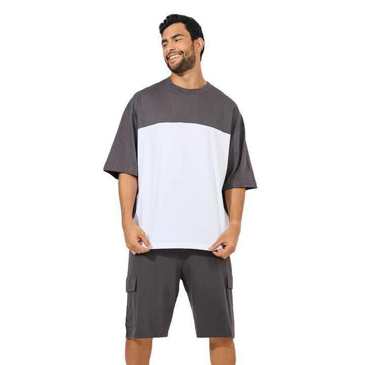 ชุดเซ็ตสองชิ้นสไตล์สตรีทแฟชั่นสำหรับผู้ชายช่วงฤดูร้อน ไซส์พลัส เสื้อยืดแขนสั้น กางเกงขาสั้นทรงกว้าง ผ้าฝ้าย 100% ระบายอากาศได้ดี สวมใส่สบาย