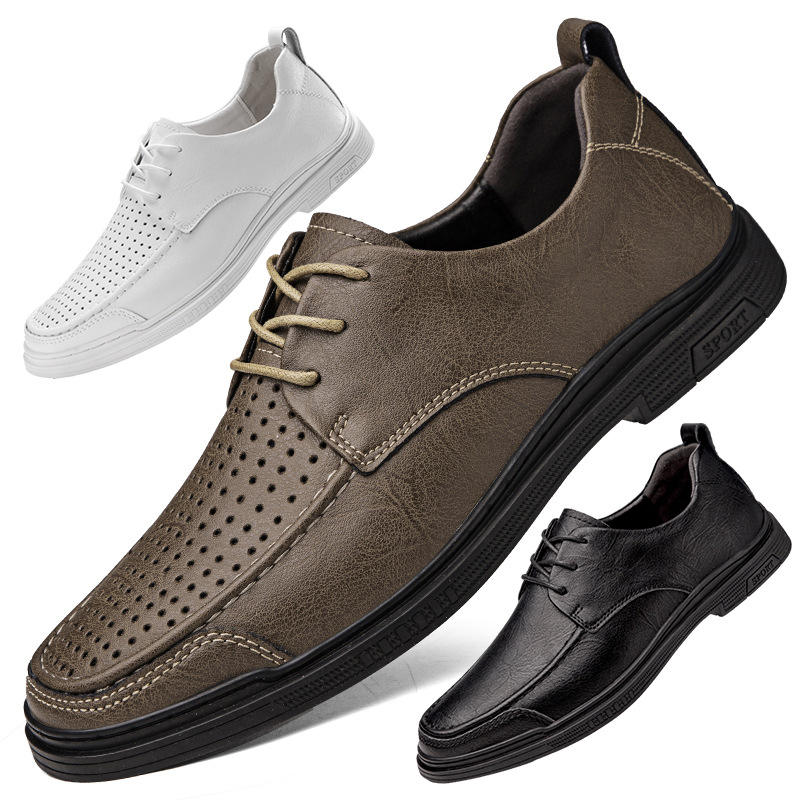 รองเท้าหนังแท้ทรงกลมหัวมนสีพื้นสำหรับผู้ชายใส่สบายระบายอากาศได้ดี พื้นยางนุ่ม เหมาะสำหรับขับรถ
