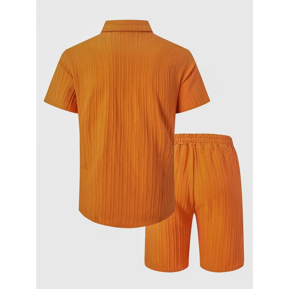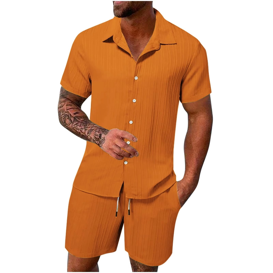 ชุดเซ็ตฤดูร้อนสำหรับผู้ชาย เสื้อยืดแขนสั้น กางเกงขาสั้นทรงกว้าง ชุดสองชิ้น ระบายอากาศได้ดี เสื้อยืดและกางเกงขาสั้นลำลองผ้าฝ้ายสำหรับผู้ชาย