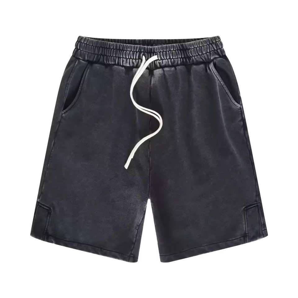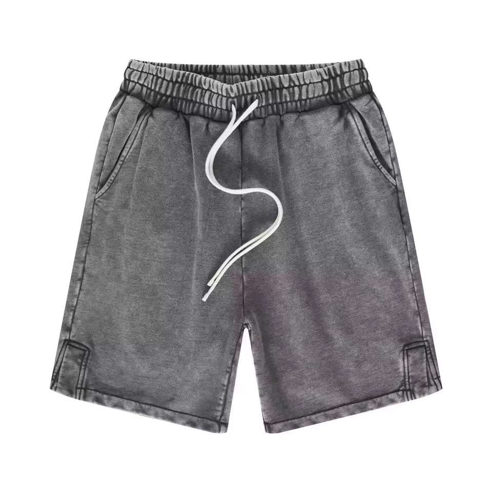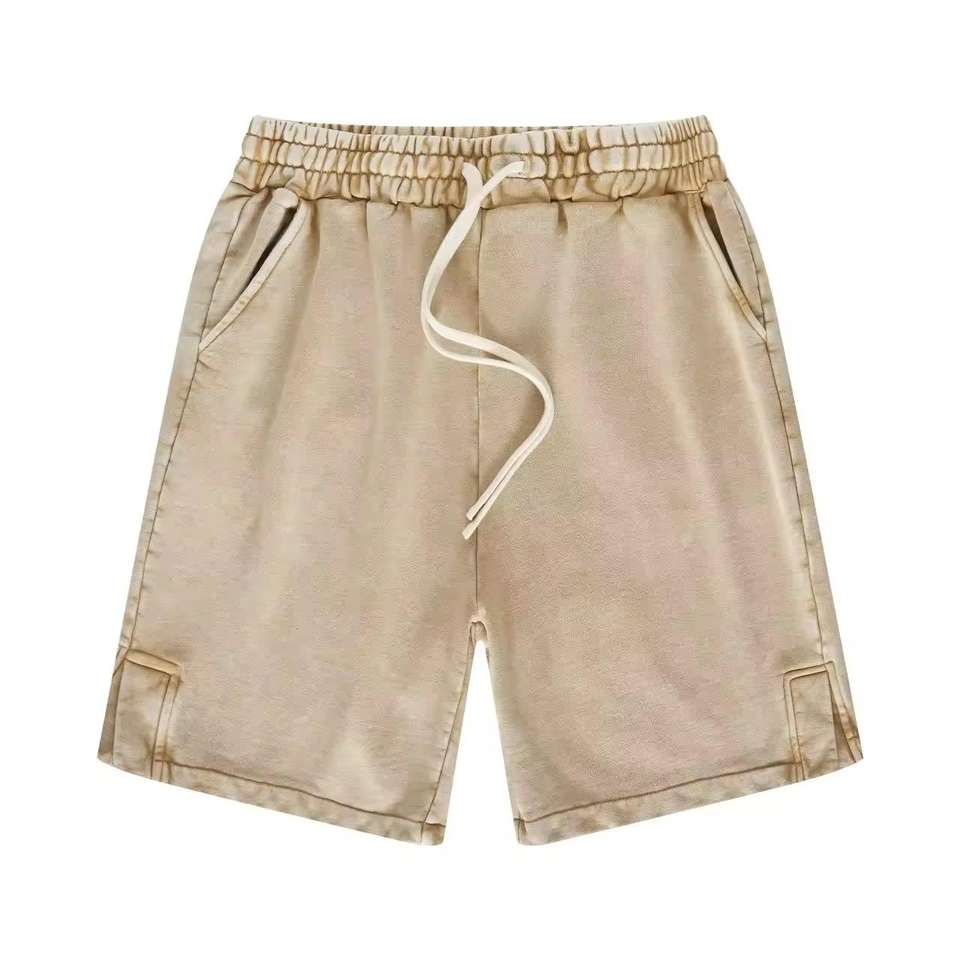 กางเกงขาสั้นผู้ชายสำหรับฤดูร้อน แห้งเร็ว ระบายอากาศได้ดี ผ้าฝ้าย สีพื้นแบบกำหนดเอง ล้างสีแบบแอซิด สไตล์สตรีทแวร์