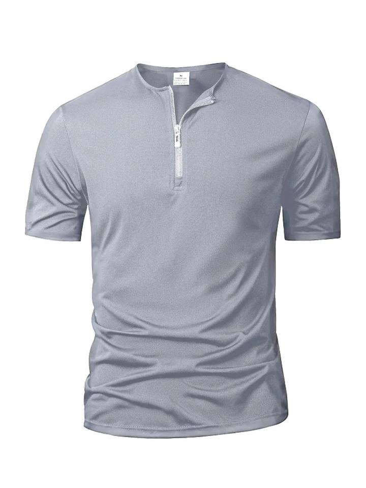 Summer Men's Solid Color T-shirt Short Sleeve Zipper Collar T Shirt Relaxed Breathable Casual Street Wear New Men's Top