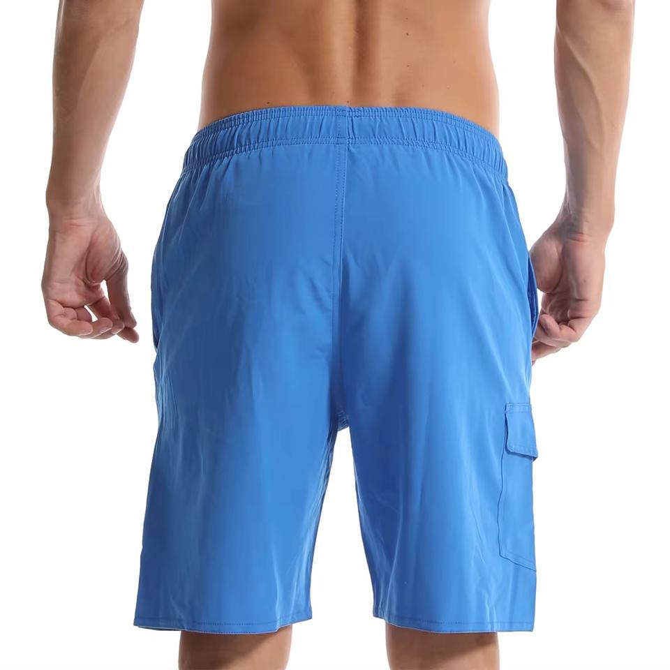 กางเกงว่ายน้ำขาสั้นผู้ชายผ้าโพลีเอสเตอร์/ ไนลอนแห้งเร็วเป็นมิตรกับสิ่งแวดล้อมระบายอากาศได้ป้องกันการเกิดรอยยับรัดเอวขนาด6นิ้ว