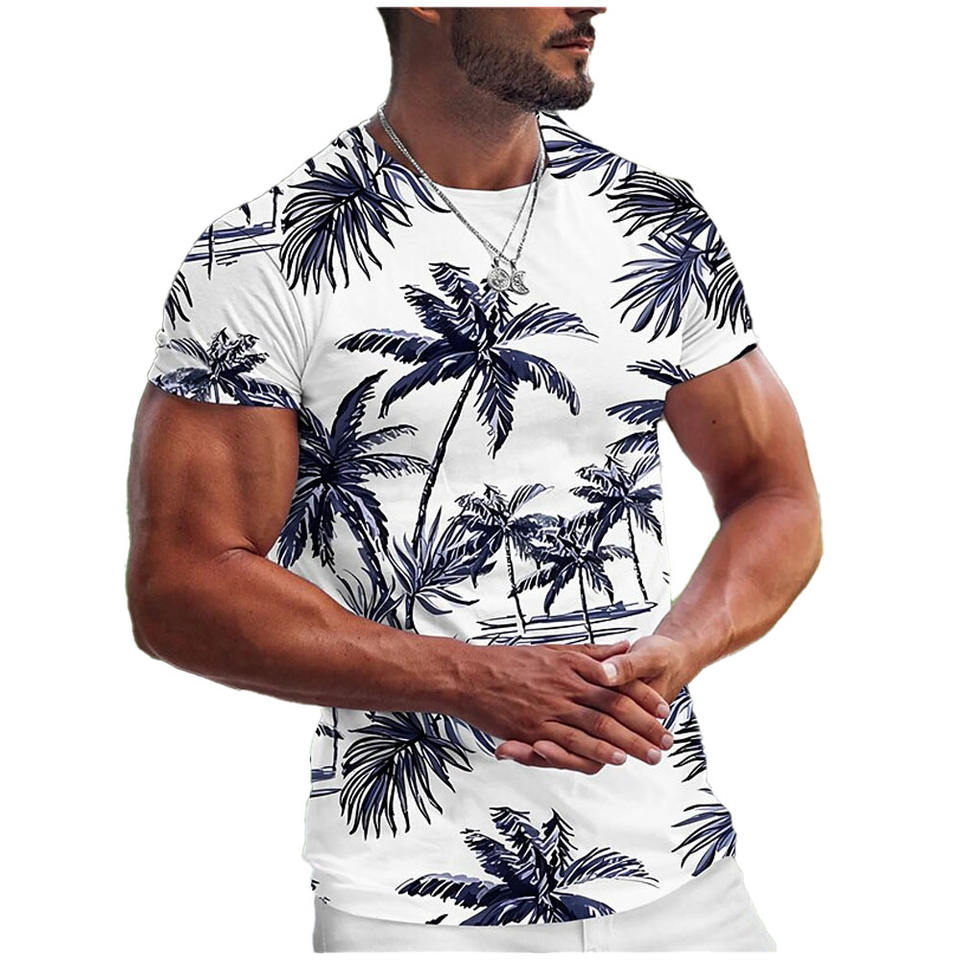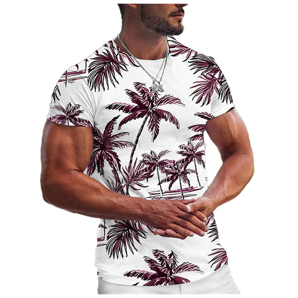 Summer Men's T Shirt 3d Coconut Tree Print Tops O-neck Hawaiian Short Sleeve Tees Fashion Beach Male Clothing Oversized T-shirt
