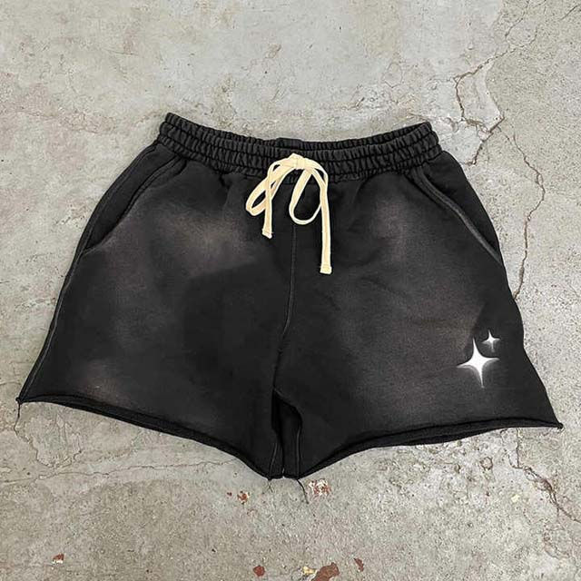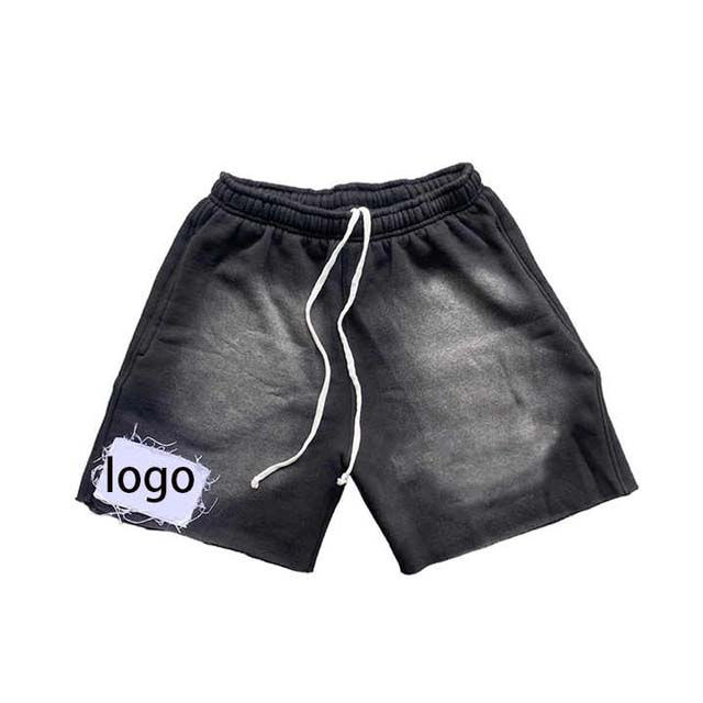 กางเกงขาสั้นผู้ชายวินเทจฤดูร้อนทรงหลวมผ้าฝ้ายเทอร์รี่สีทึบพิมพ์ลายสไตล์สตรีทแวร์ทรงหลวม