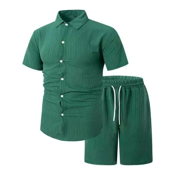 ชุดเสื้อโปโลและกางเกงขาสั้นลำลองสำหรับผู้ชายสไตล์วินเทจถักจากโพลีเอสเตอร์/คอตตอนรักษ์โลก สำหรับฤดูร้อน พร้อมโลโก้ด้านหน้าแบบ ODM