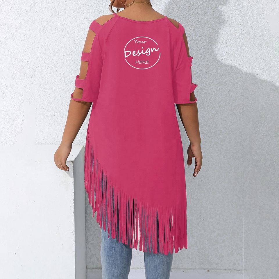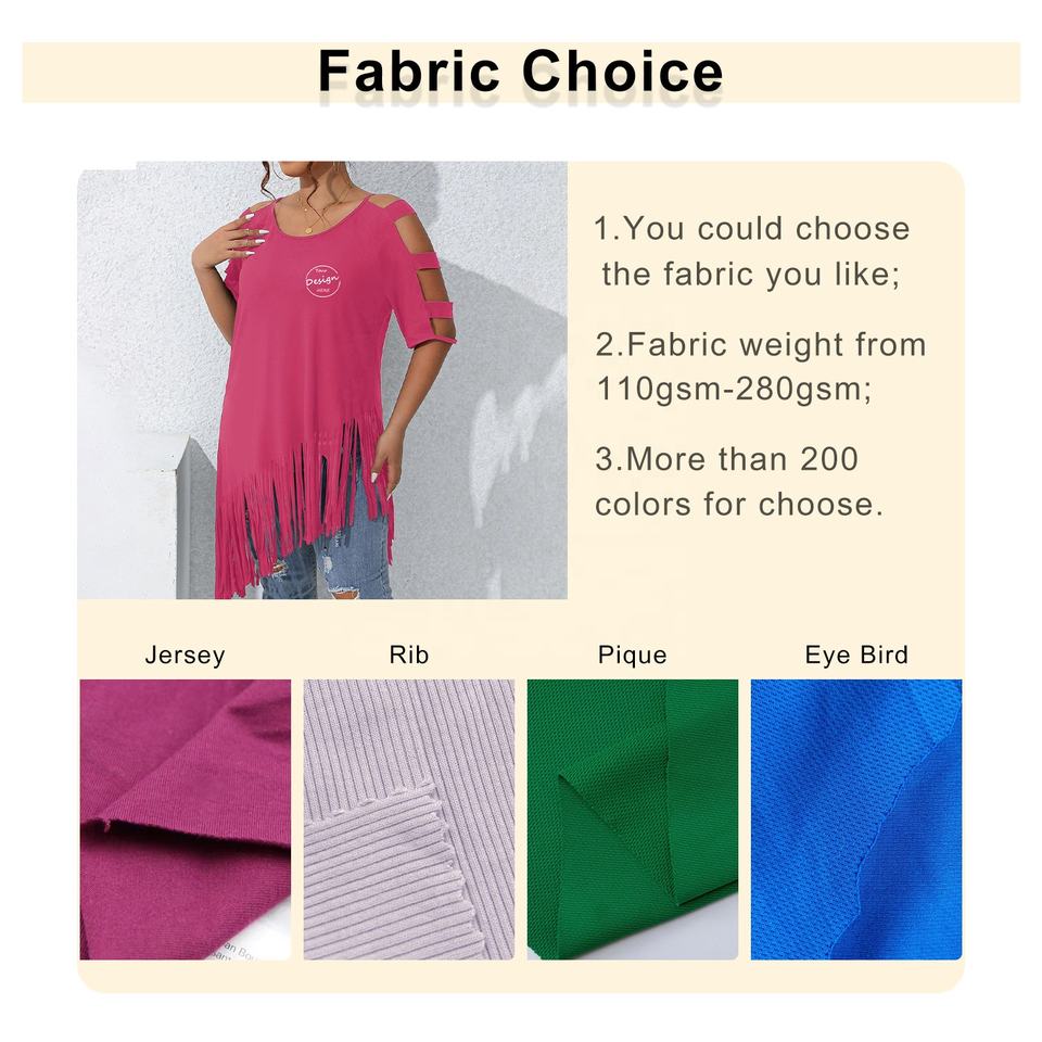 เสื้อยืดคอกลมผ้าคอตตอนระบายอากาศบางของผู้หญิง100% คอกลมพิมพ์ลายปักพู่ที่ไหล่ชายเสื้อ