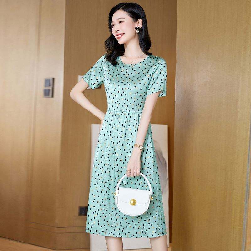 ชุดเดรสผ้าซาตินตัวยาวหรูหราพร้อมคอกลมแฟชั่นชุดเดรสผ้าซาตินหรูหรามีระดับความฉลาดใหม่สำหรับฤดูร้อน