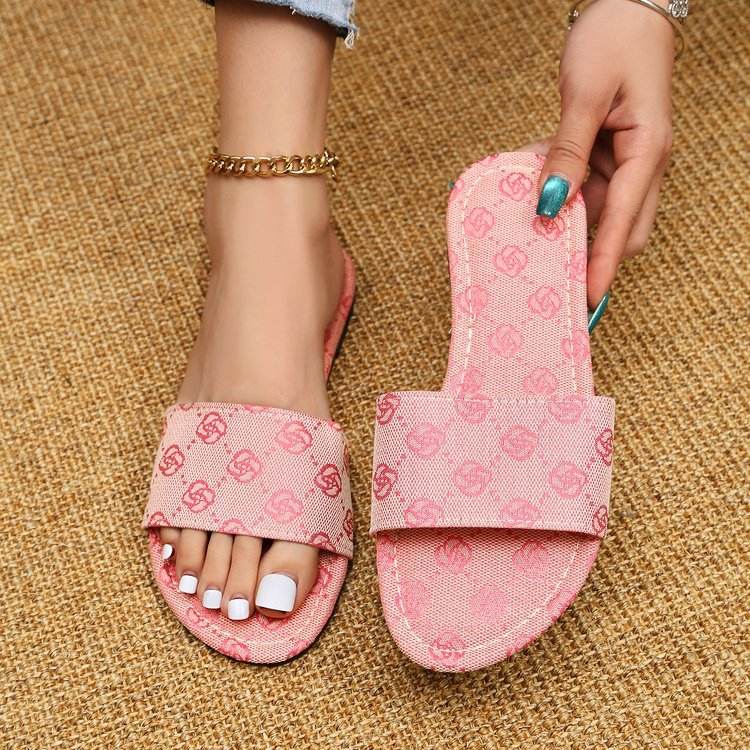 รองเท้าแตะชายหาดปักลายดอกไม้สำหรับผู้หญิงใหม่ฤดูร้อนรองเท้าแตะชายหาดแบบสวมกันลื่นระบายอากาศ
