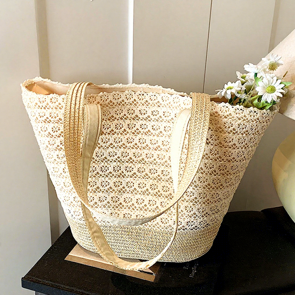 กระเป๋าโท้ทผู้ชายทรงใหญ่ รุ่นใหม่ประจำฤดูร้อน ปี 2025 ตกแต่งด้วยลูกไม้และคริสตัล สายสะพายยางยืด สไตล์โบฮีเมียนสุดหรู