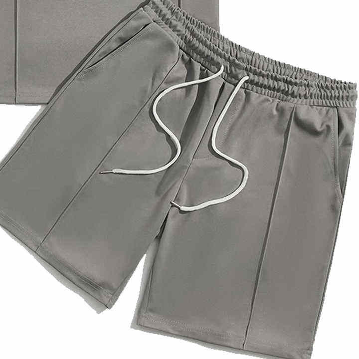 ชุดเซ็ตเสื้อยืดแขนสั้นและกางเกงขาสั้นผ้าฝ้ายถัก 100% ระบายอากาศดี สไตล์ลำลองสำหรับผู้ชาย รุ่นใหม่ประจำฤดูร้อน ชุดสองชิ้นสีพื้น สตรีทแวร์