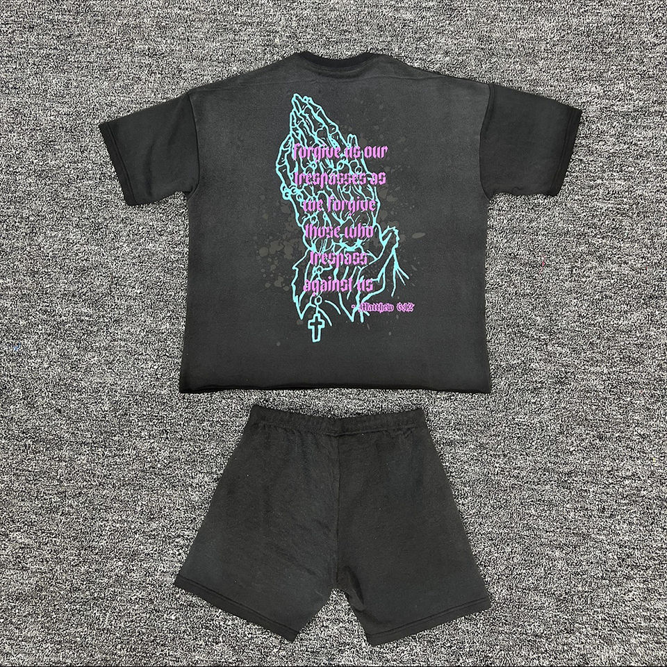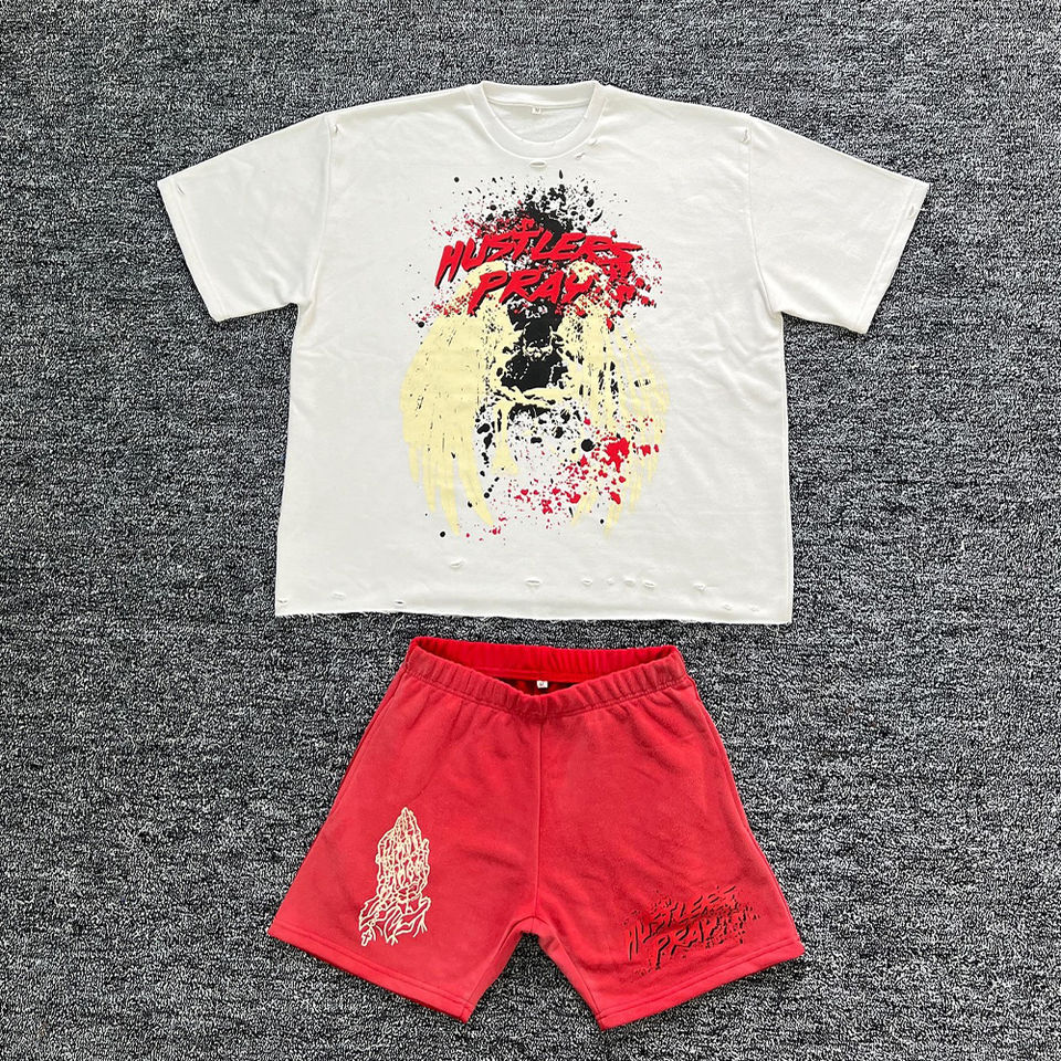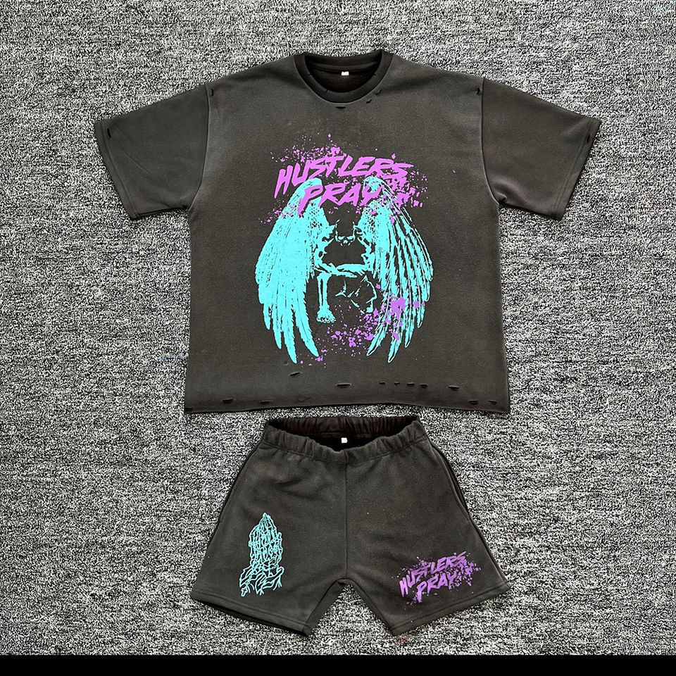 ชุดเซ็ตเสื้อยืดแขนสั้นกางเกงขาสั้นลำลองระบายอากาศสำหรับผู้ชาย รุ่นใหม่ประจำฤดูร้อน ชุดสองชิ้นสไตล์สตรีทแวร์