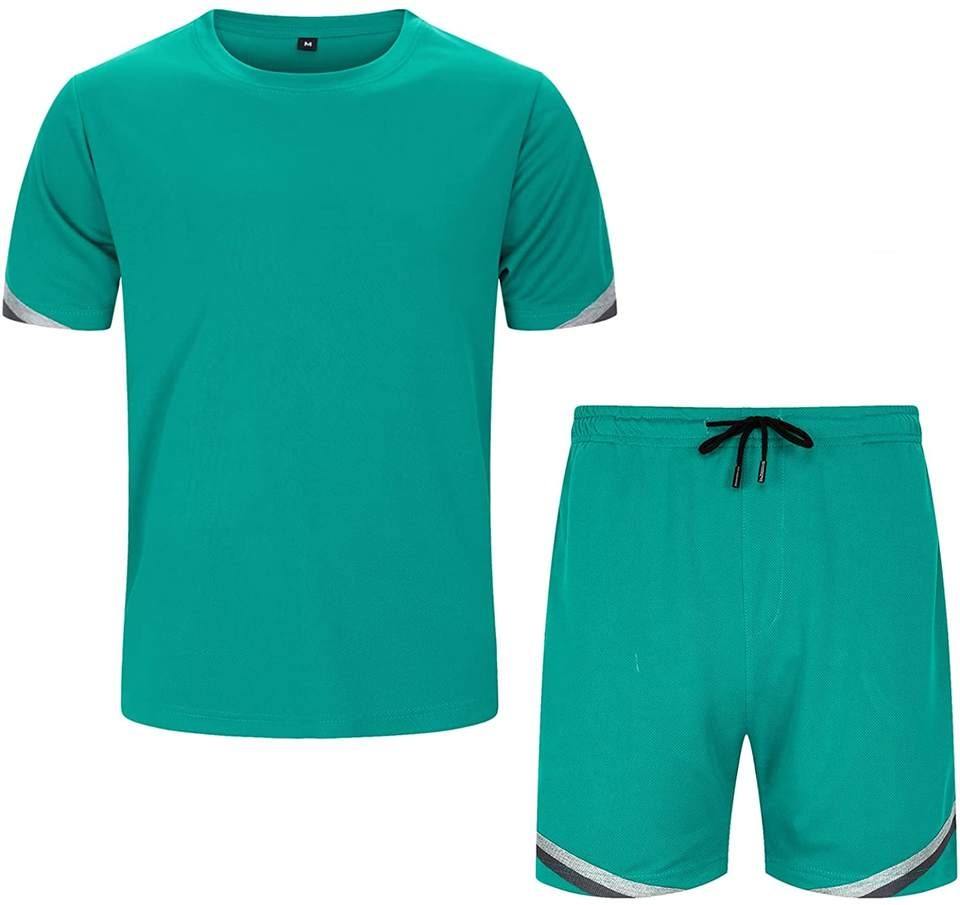 ชุดเซตกางเกงขาสั้นลำลองสำหรับผู้ชายชุด2ชิ้นกางเกงขาสั้นเสื้อยืดแขนสั้นชุดวอร์มสีล้วนสำหรับฤดูร้อน