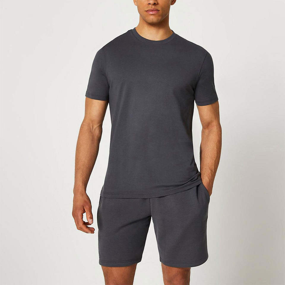 ชุดเซ็ตเสื้อยืดและกางเกงขาสั้นลำลองแขนสั้น2ชิ้นสีพื้นชุดฤดูร้อนใหม่ฤดูร้อนสำหรับผู้ชาย