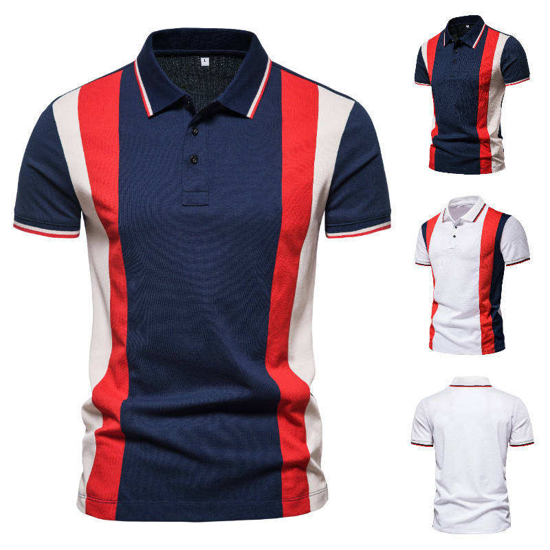 เสื้อยืดแขนสั้นสำหรับผู้ชายใส่กลางแจ้ง, เสื้อยืดคอปกพิมพ์ลายดิจิตอลสีเข้ากันป้องกันการเกิดขนแกะถักเปล่าสำหรับฤดูร้อนใหม่