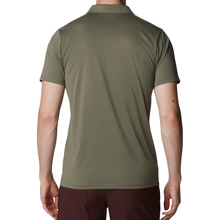 เสื้อโปโลผู้ชายแขนสั้นทรงสลิมฟิตสีพื้นกันหดแห้งเร็วสำหรับฤดูร้อน