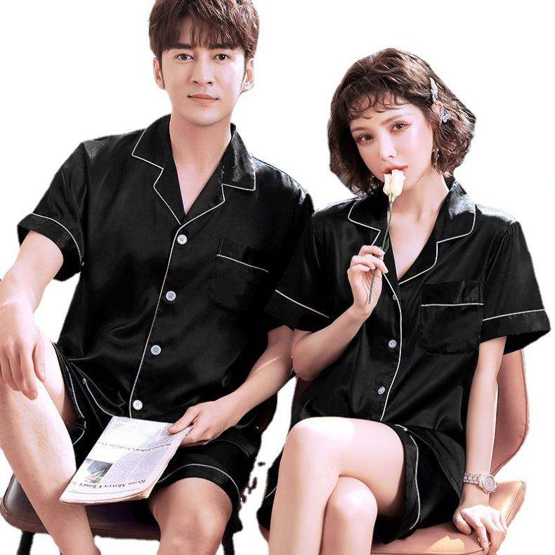 ชุดนอนคู่รักยอดนิยมรุ่นใหม่ประจำฤดูร้อน ผ้าซาตินสำหรับผู้หญิง ผ้าไหมสำหรับผู้ชาย ไซส์ XL ชุดนอนอยู่บ้านแบบยูนิเซ็กซ์ ไซส์พลัส