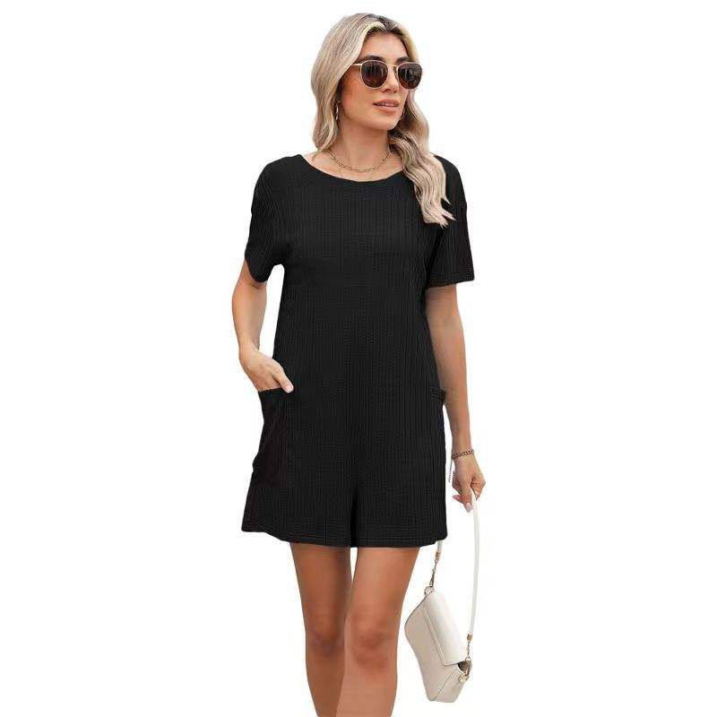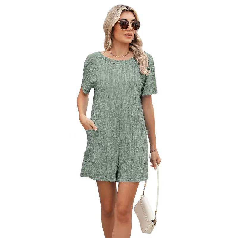 จั๊มสูทขาสั้นผู้หญิง แขนสั้น คอวี ทรงเข้ารูป มีกระเป๋า สไตล์ยุโรปอเมริกัน เซ็กซี่ สำหรับฤดูร้อน เหมาะสำหรับใส่ไปชายหาด