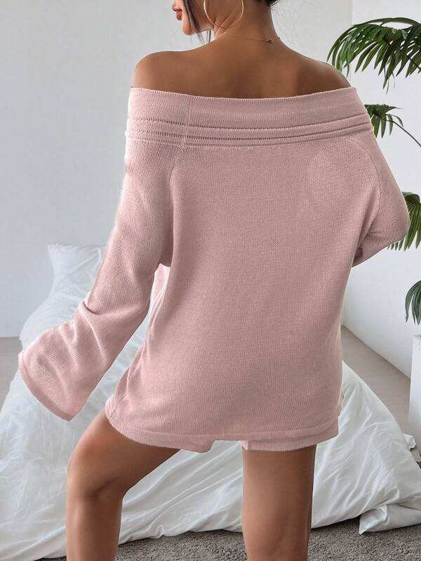 ชุดสองชิ้นสำหรับผู้หญิงชุดถักสองชิ้นเสื้อเปิดไหล่แขนกุดทรงหลวมแบบเรียบง่ายใหม่ฤดูร้อน