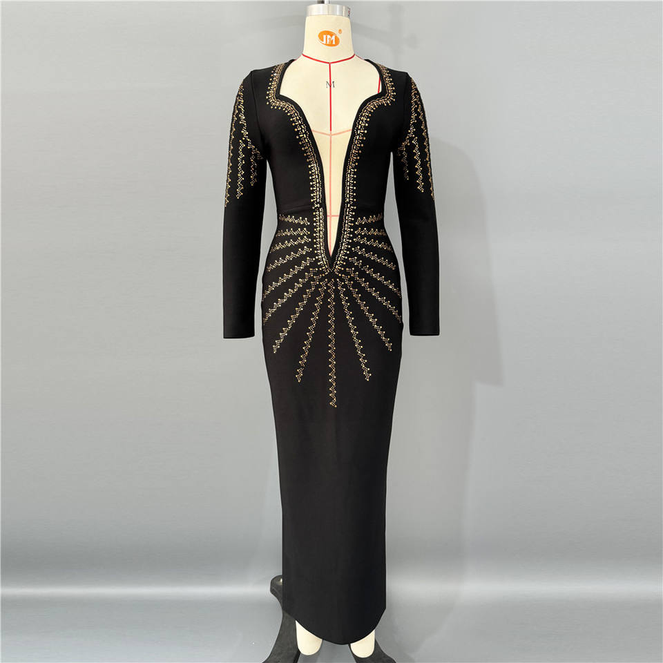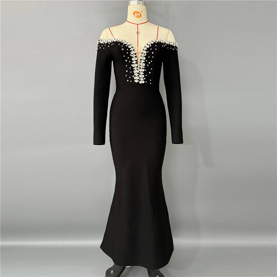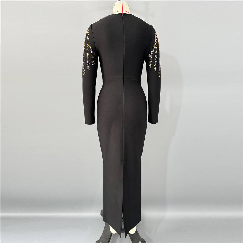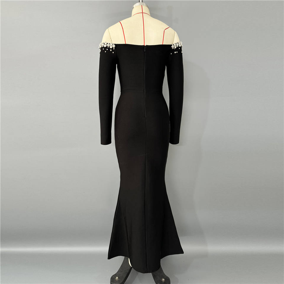 ชุดเดรสทรงเอสีดำแขนโปร่งแสงและปักลายดอกไม้รายละเอียด XS ถึง XL Empire เอวยาวถึงเข่าถึงพื้น