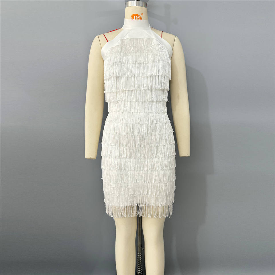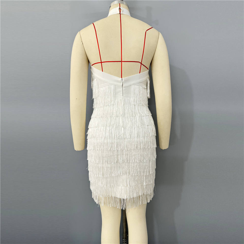 เดรสสายเดี่ยวแขนกุดเซ็กซี่หรูหราพร้อมชุดเดรสราตรีทรงหลวมแบบผูกเชือกคล้องคอแต่งปกแบบลำลอง