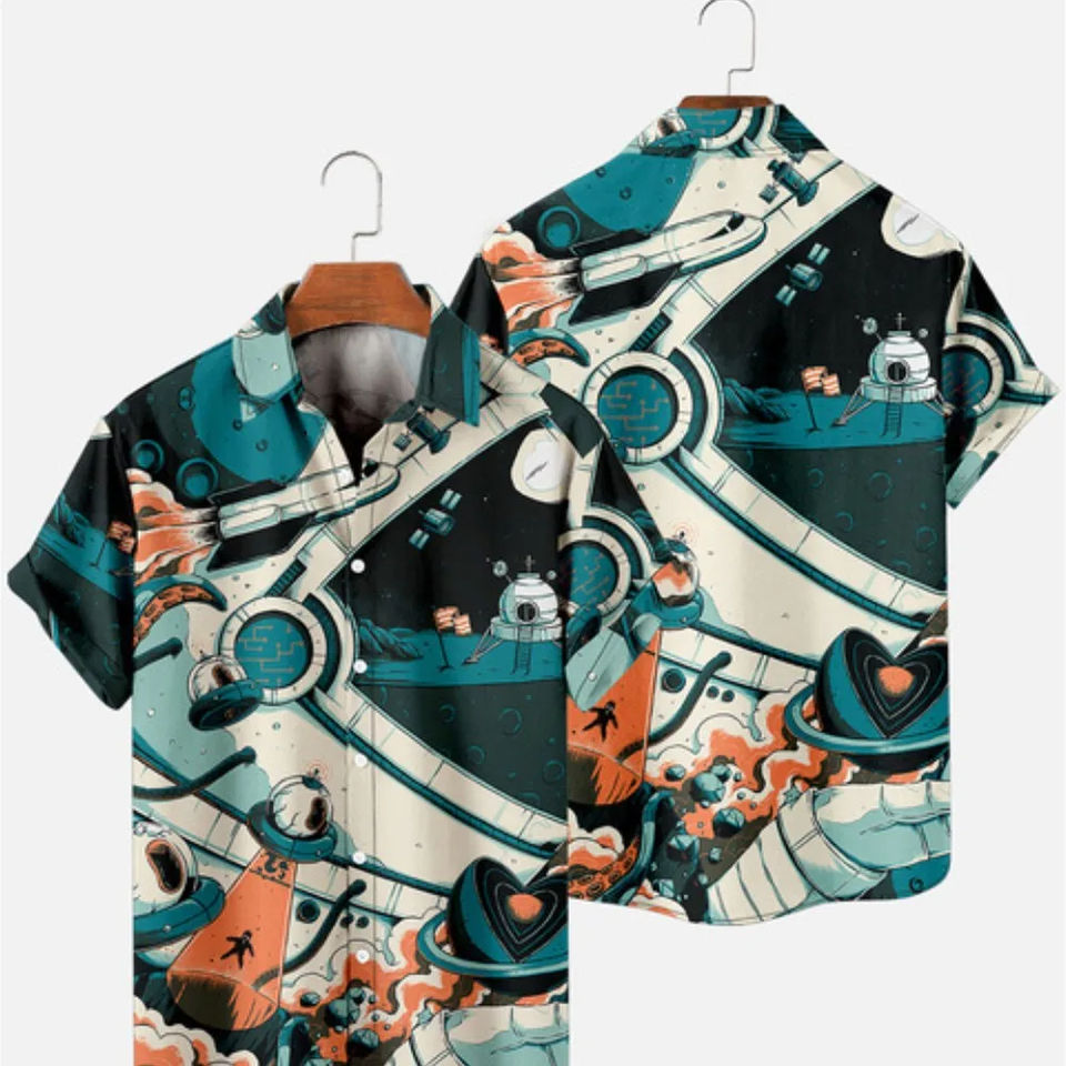 ชุดสั้นชายหาดฮาวายแนวสตรีทสำหรับผู้ชายเสื้อเชิ้ตแขนสั้นผ้าฝ้าย100% แบบวินเทจตามสั่งสำหรับวันหยุดฤดูร้อนใหม่
