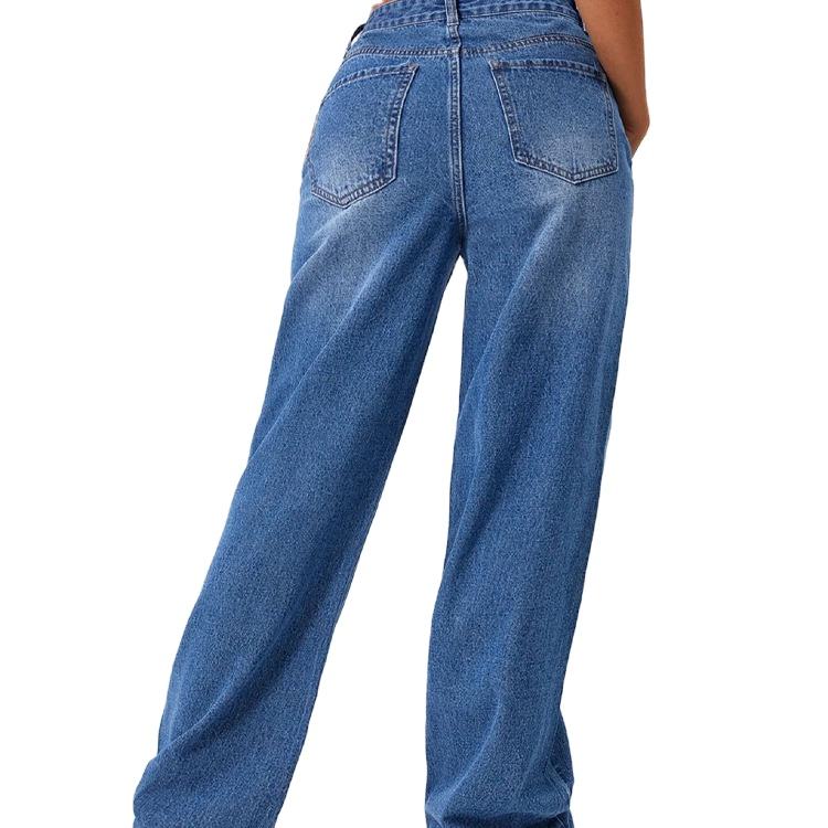 กางเกงยีนส์เอวสูงสำหรับผู้หญิง, กางเกงยีนส์ผ้ายืดเอวสูงทรงหลวมกระชับขาตรงแยกชายเสื้อเอวต่ำสไตล์ใหม่ฤดูร้อน