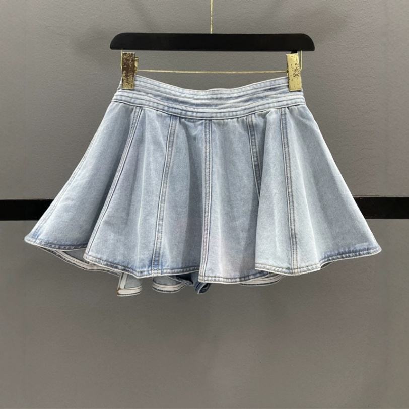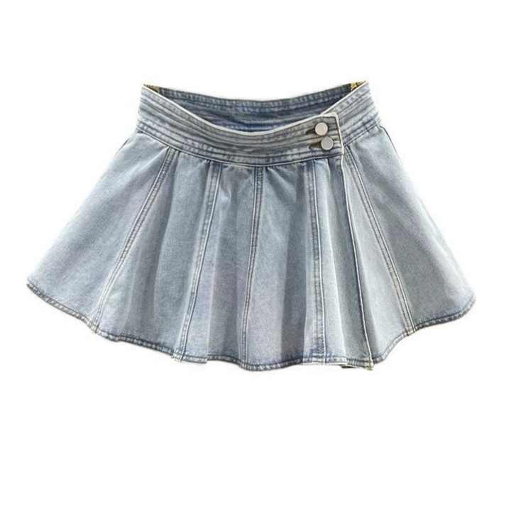 กระโปรงยีนส์สั้นและกระโปรงยาวปานกลางทรงเอวไม่สมมาตรสไตล์ใหม่รับซัมเมอร์สำหรับผู้หญิง