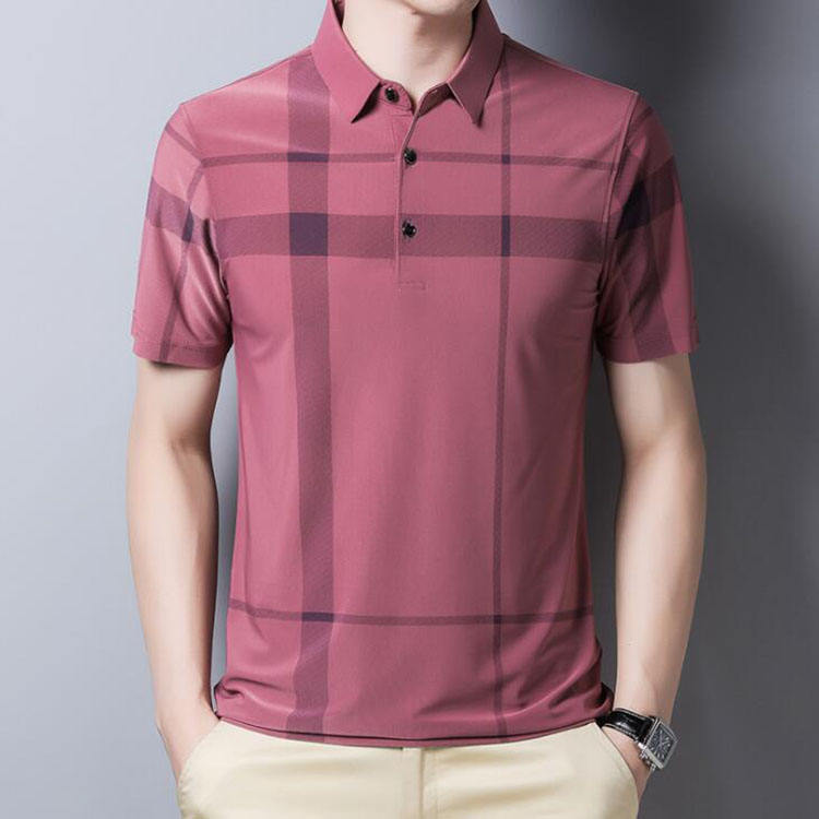 เสื้อโปโลผู้ชายสไตล์ใหม่ฤดูร้อนระบายอากาศได้ผ้าไหมน้ำแข็งปกพับลงลำลองธุรกิจแขนสั้นพ่อหนุ่ม