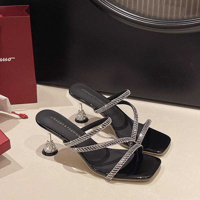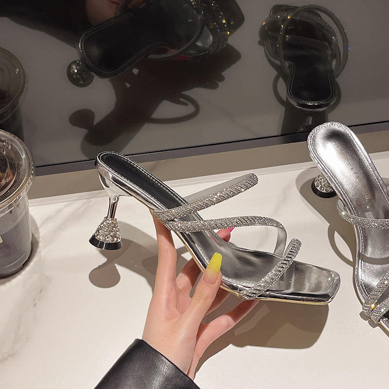 รองเท้าเจ้าสาวสไตล์ใหม่สำหรับฤดูร้อน ประดับคริสตัล กันน้ำ ส้นสูง ปลายแหลม เหมาะสำหรับใส่ออกนอกบ้าน