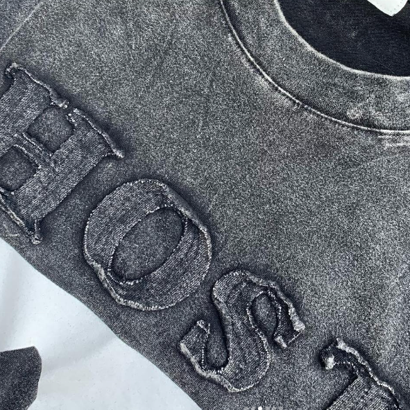 เสื้อยืดคอวีสำหรับผู้ชายอินเทรนด์ผ้าคอตตอน/ใยไผ่300กรัมพิมพ์ลายซิลค์สกรีนลายเนื้อแน่น