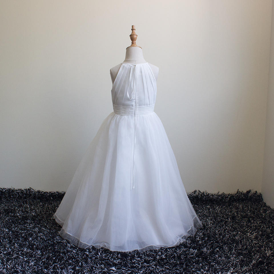 ชุดเดรสชีฟองแบบคลาสสิกสำหรับงานแต่งงานฤดูร้อน แขนกุด มีสายคาดเอว สีขาว สำหรับเด็กผู้หญิงและเพื่อนเจ้าสาว