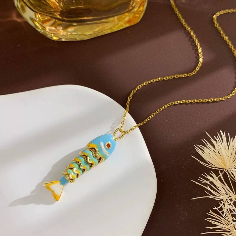 สร้อยคอปลาหลากสีสัน ซีรีส์ซัมเมอร์โอเชียน สร้อยคอปลาทองโลหะแฟชั่นส่วนบุคคล