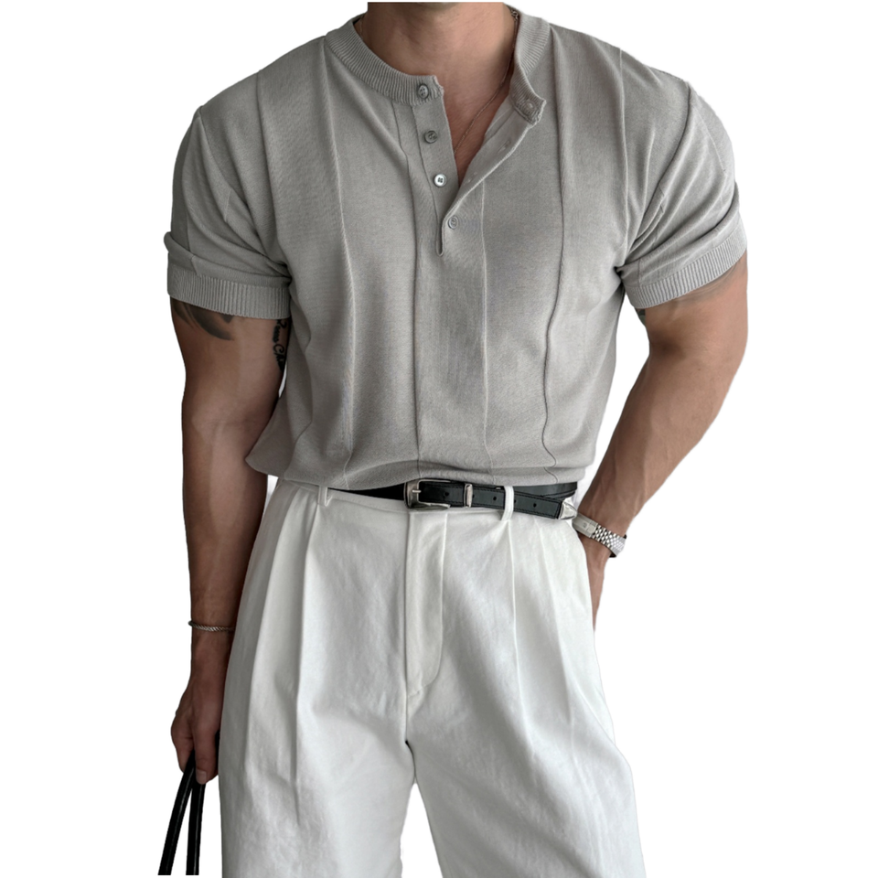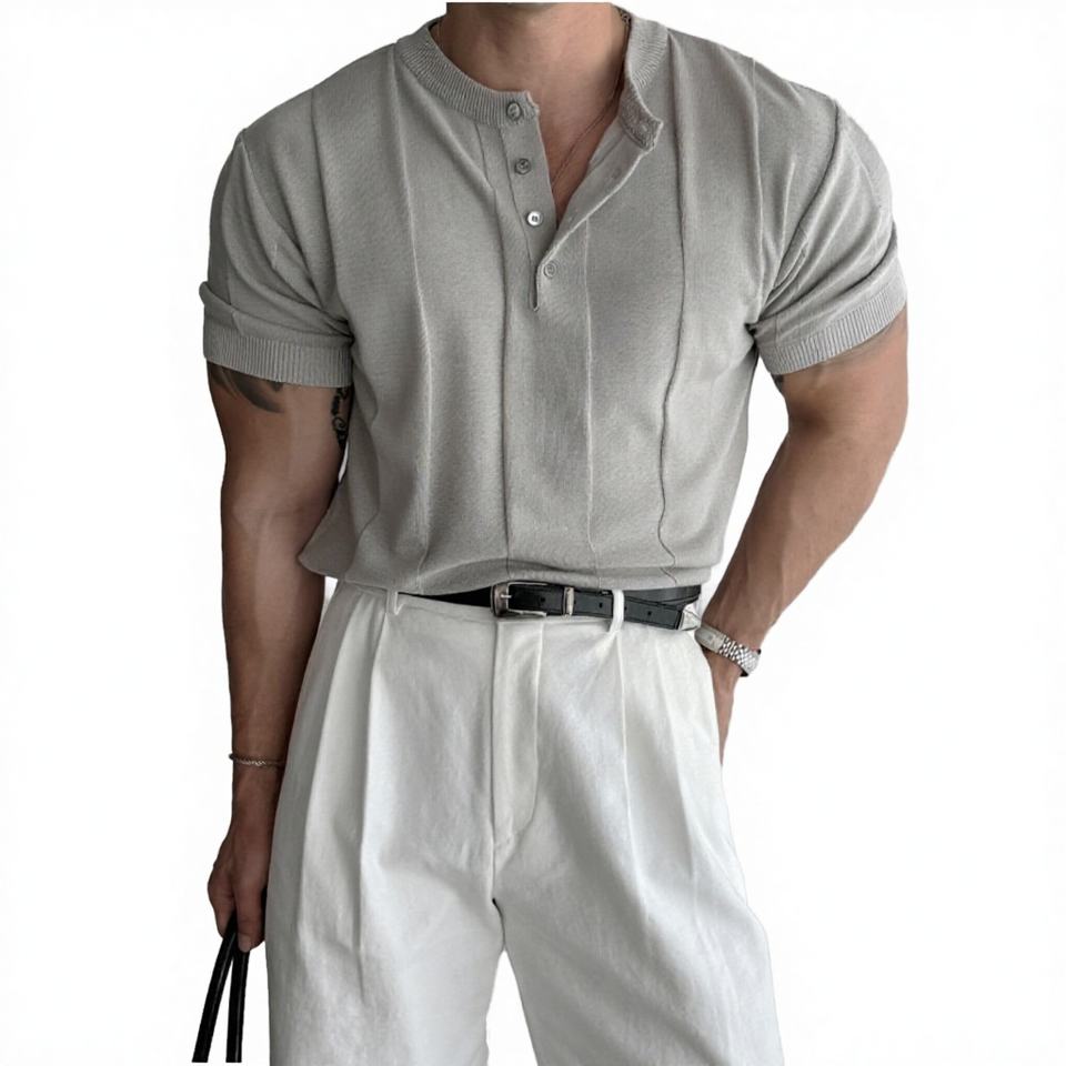 เสื้อยืดแขนสั้นทรงเข้ารูป คอเฮนรี่ ดีไซน์เรียบง่าย ระบายอากาศได้ดี เหมาะสำหรับใส่ทำงานในฤดูร้อน สำหรับผู้ชาย