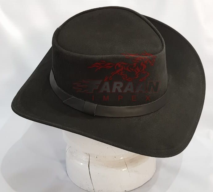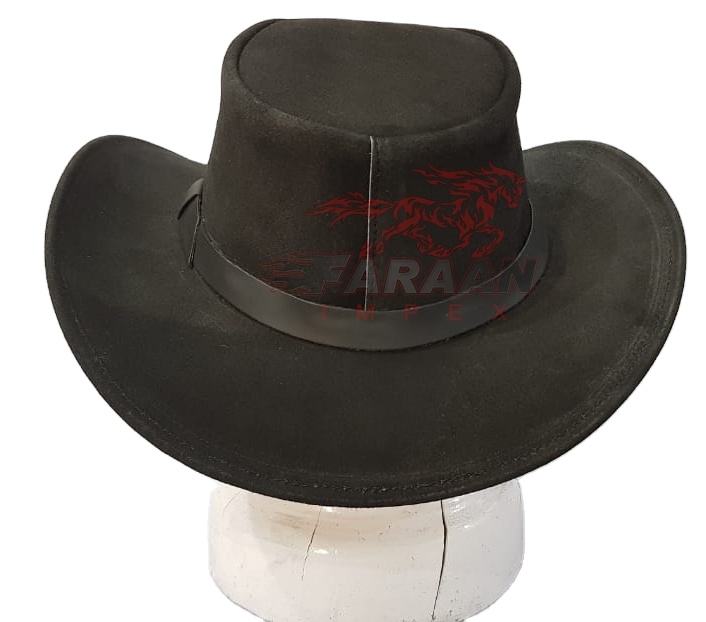 2025คลาสสิกสีดำหนังกลับสไตล์ตะวันตกหมวกออสเตรเลียหมวกคาวบอยเต้นรำปาร์ตี้สำหรับการเดินทางกลางแจ้ง