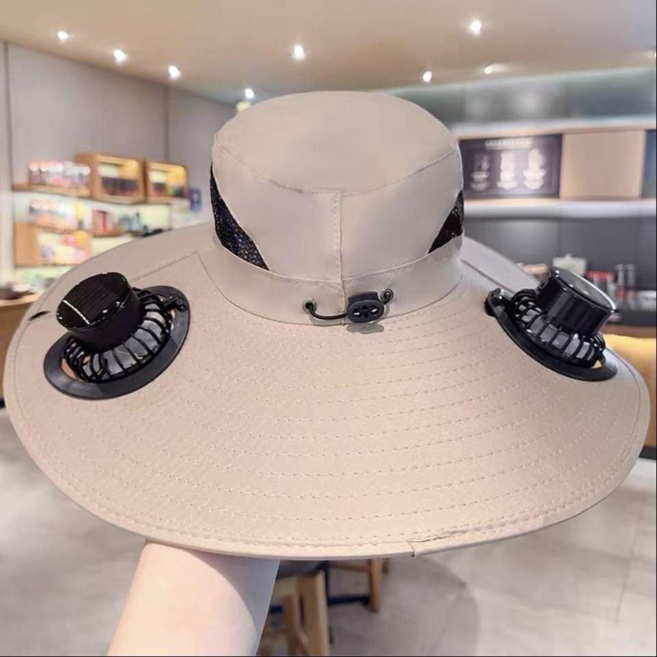 Summer Outdoor Working Travel Hiking Dual USB Solar Charging Fans Sun Protection Unisex Wide Brim Polyester Sun Hat Fisher Cap