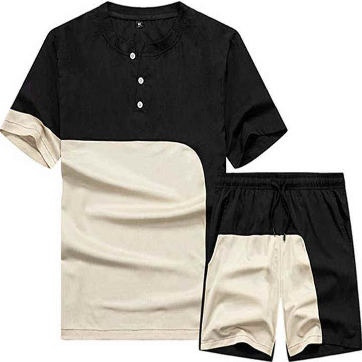 ชุดเสื้อยืดและกางเกงขาสั้นสำหรับฤดูร้อนชุดกีฬาสำหรับผู้ชายชุดกีฬาวิ่งจ๊อกกิ้ง