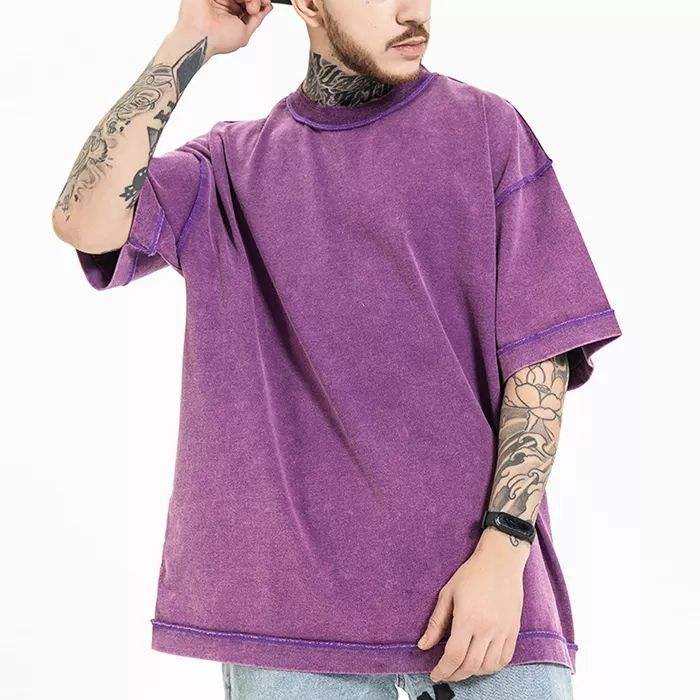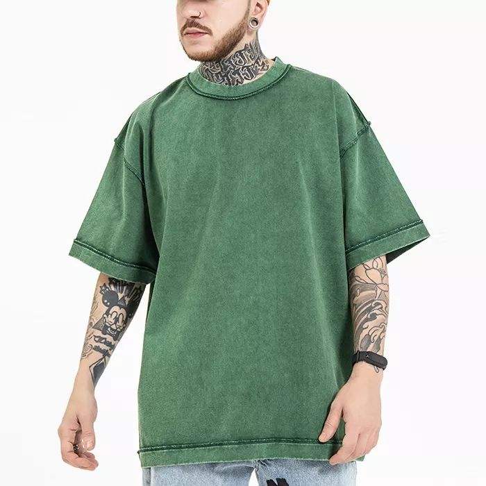 เสื้อยืดโอเวอร์ไซส์ผ้าคอตตอนหนานุ่มทรงหลวมไหล่ตกสำหรับผู้ชายสไตล์วินเทจสำหรับฤดูร้อน