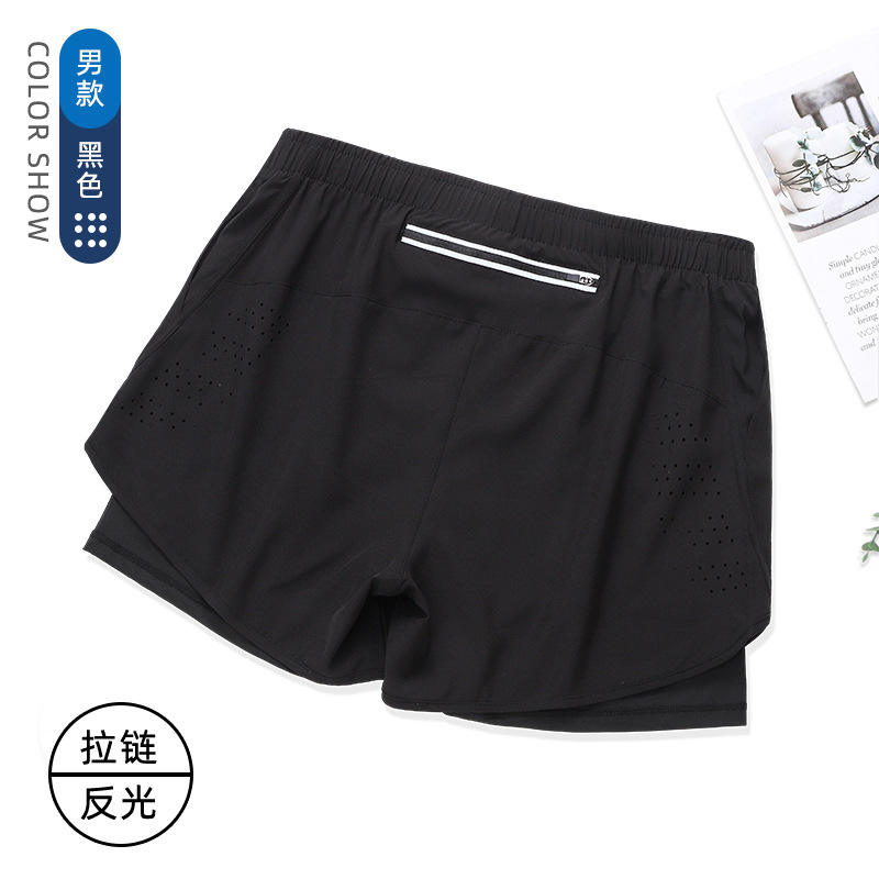 กางเกงขาสั้นผ้าโพลีเอสเตอร์ผ้าสแปนเด็กซ์ระบายอากาศได้ดีสำหรับผู้ชายกางเกงขาสั้นกีฬาวิ่งออกกำลังกายสองชั้นสำหรับผู้ชายฤดูร้อน