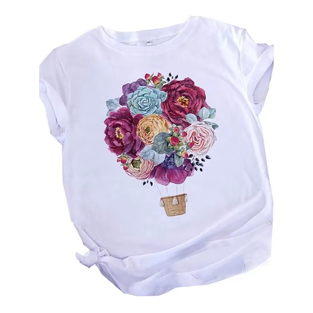 เสื้อยืดสำหรับผู้หญิงสไตล์วินเทจพิมพ์ลายดอกไม้สำหรับใส่ในงานปาร์ตี้กลางแจ้งขายดีในฤดูร้อน