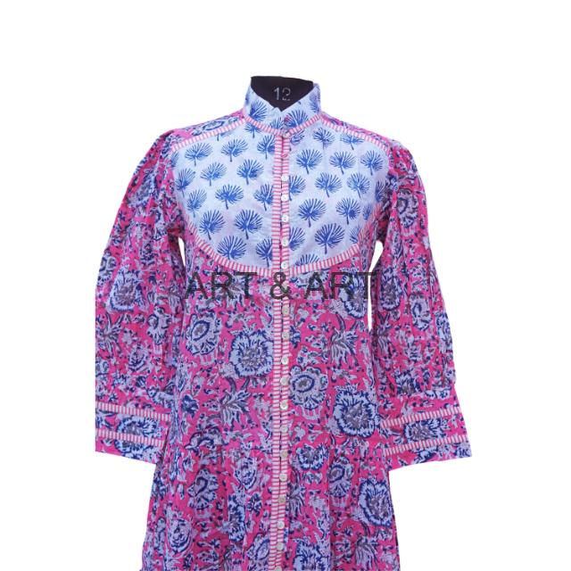 ชุดเดรสผ้าฝ้ายพิมพ์ลายดอกไม้ลำลองมินิเดรสผ้านุ่มใส่อยู่บ้านแขนพองลำลองทรงหลวมสำหรับฤดูร้อน