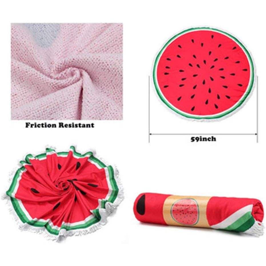 ผ้าขนหนูชายหาดทรงกลมสำหรับผู้หญิงเสื่อโยคะผ้าฝ้ายมีพู่พิมพ์ลาย3D แตงโมขนาดกลางออกแบบได้ตามต้องการสไตล์จีน