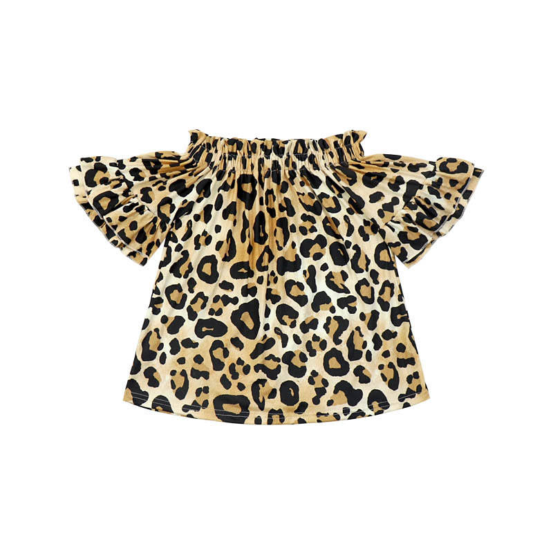 เสื้อยืดแขนระบายลายเสือดาวสำหรับแม่และลูกสาว 6 ขวบ สไตล์ลำลอง ชุดคู่แม่ลูก ลุคครอบครัว