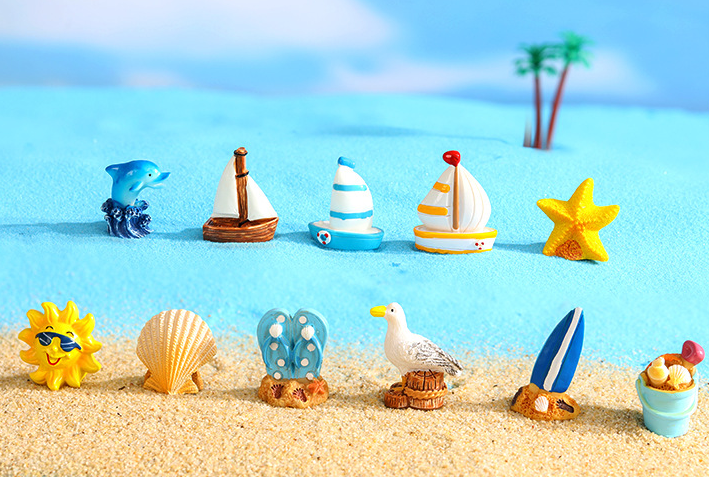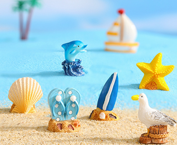 บ้านตุ๊กตาทรายฤดูร้อนชายหาดเซิร์ฟบอร์ดเปลือกหอยนกทะเลปลาโลมาปลาดาวเรือใบชายหาดถังแสงแดดสำหรับเด็ก