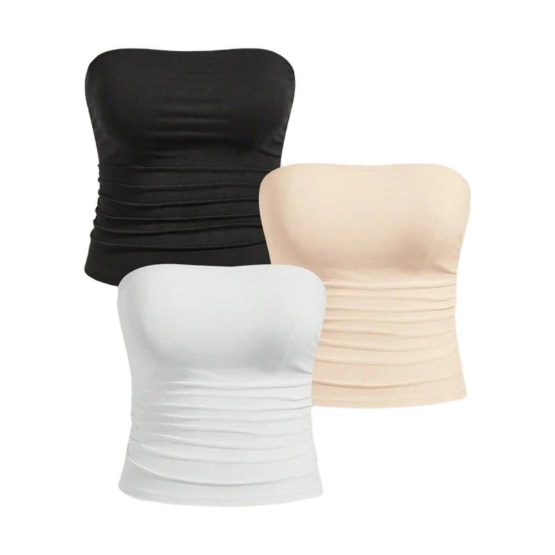 Summer Sexy Strapless Tank Top for Women Femme Plus Size Female Underwear Breathable Knitted Fabric Short Length with Front Logo