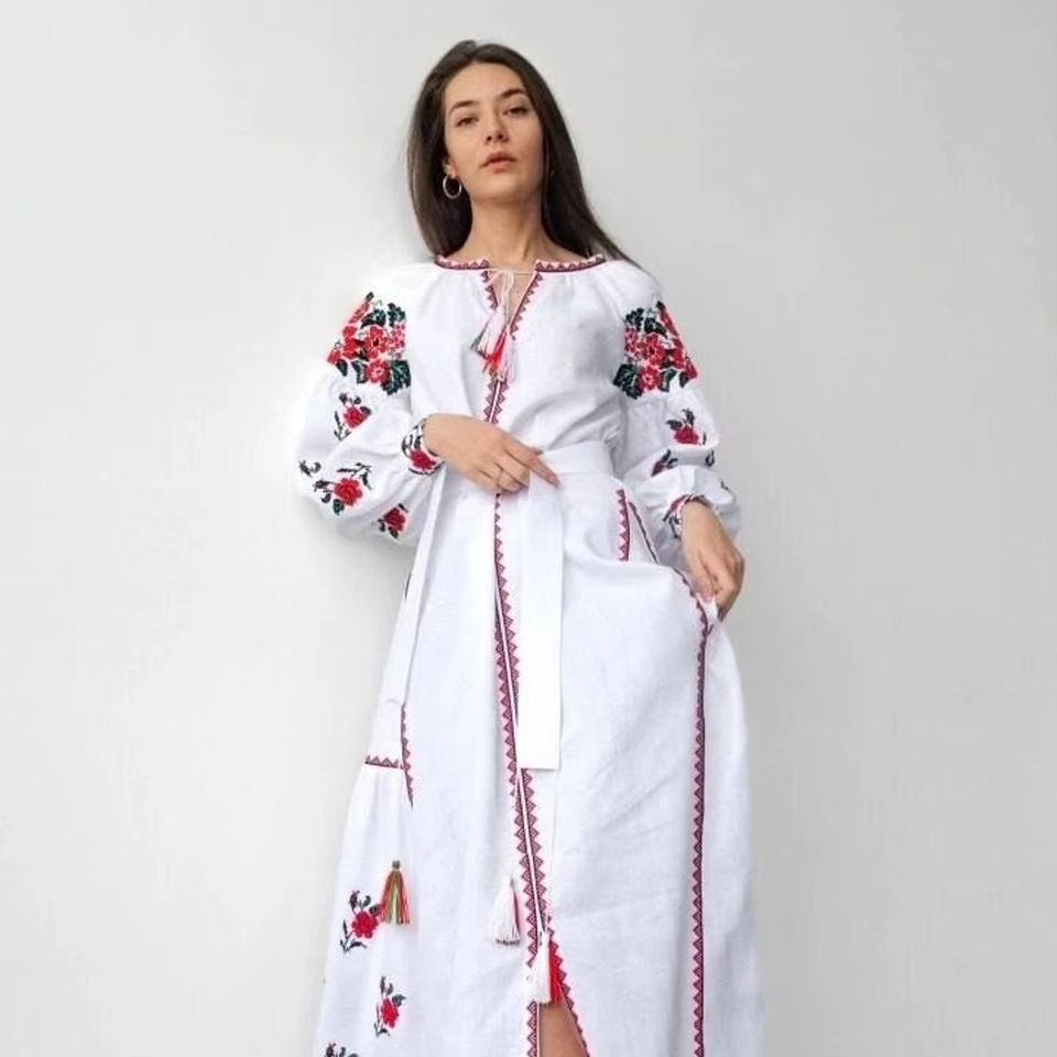 ชุดเดรสแขนยาวปักลายยูเครนสไตล์วิคตอเรียนสำหรับผู้หญิงเทรนด์เซ็กซี่ฤดูร้อน