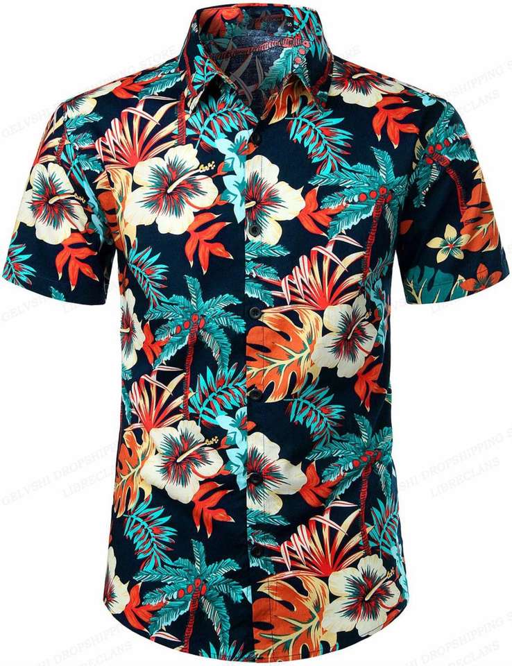 เสื้อชายหาดแขนสั้นพิมพ์ลายสำหรับผู้ชายเสื้อชายหาดวันหยุดฤดูร้อน